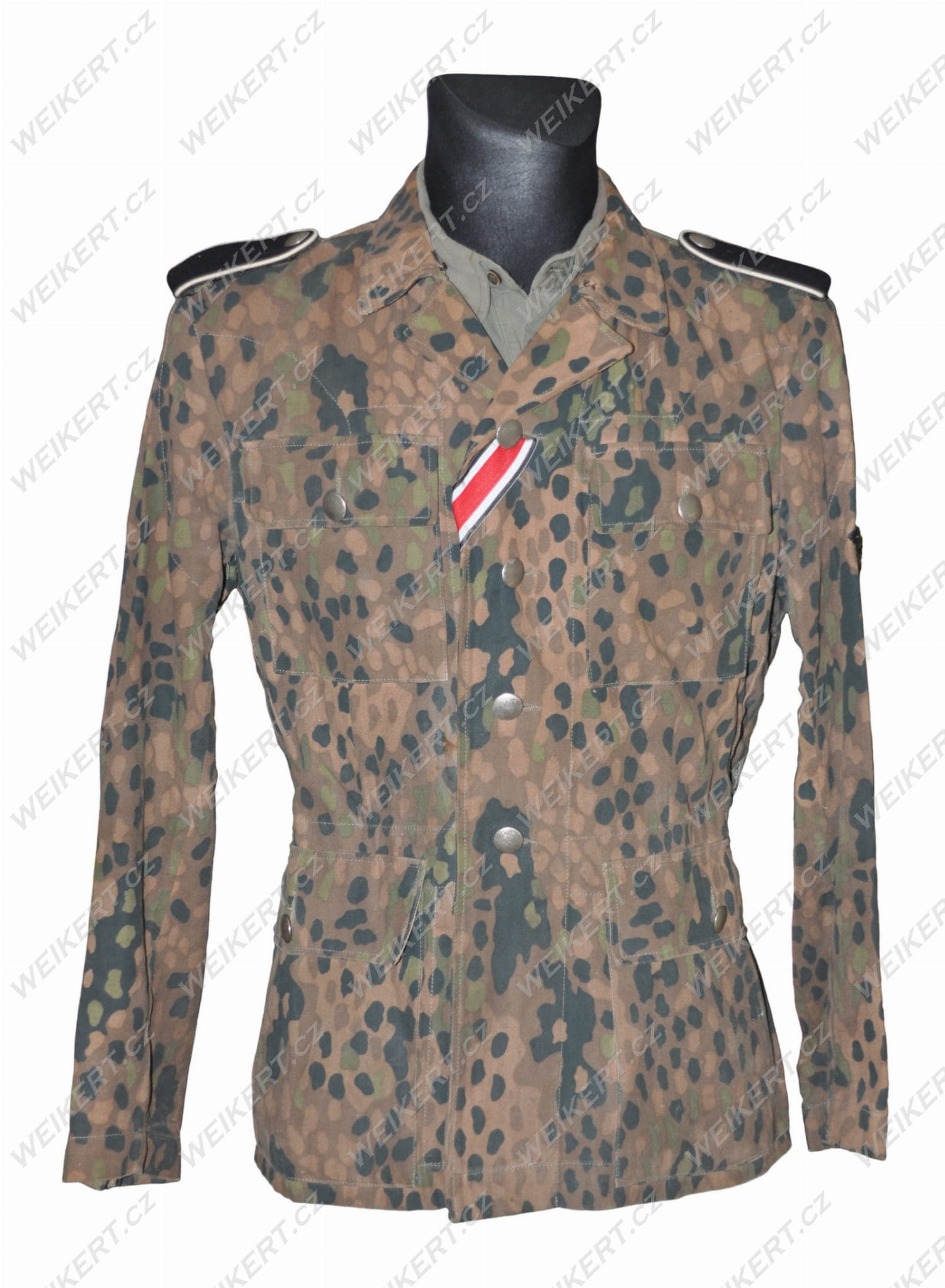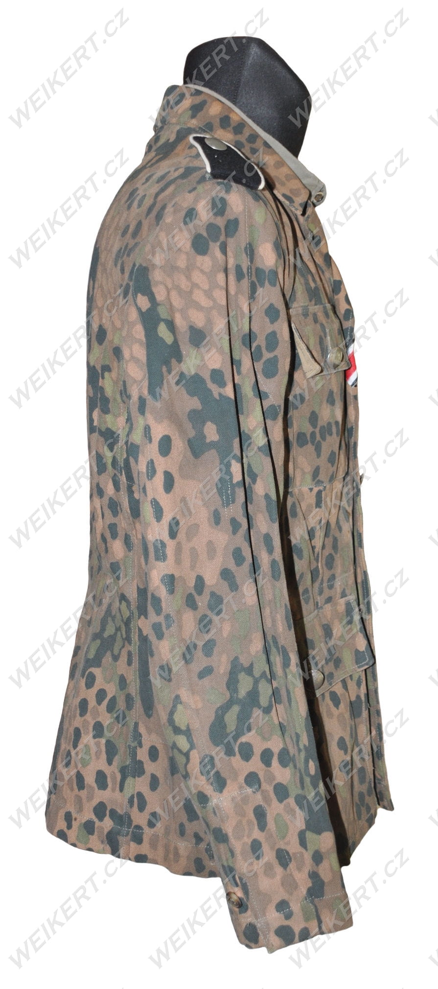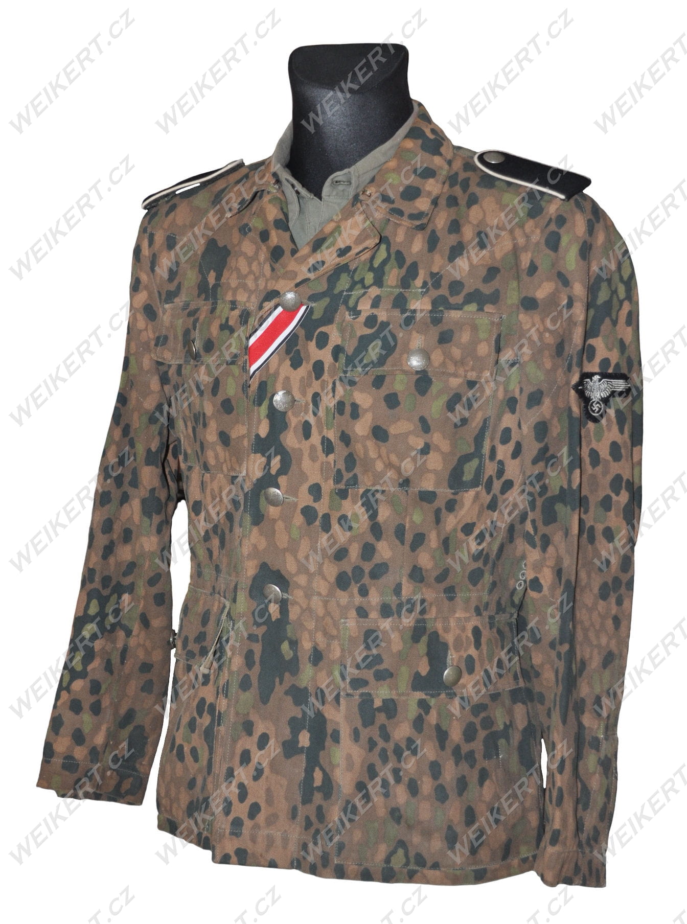 Eine perfekte Kopie einer deutschen Uniformjacke im Dot44-Tarnmuster, die im Zweiten Weltkrieg von Einheiten der Waffen-SS verwendet wurde.