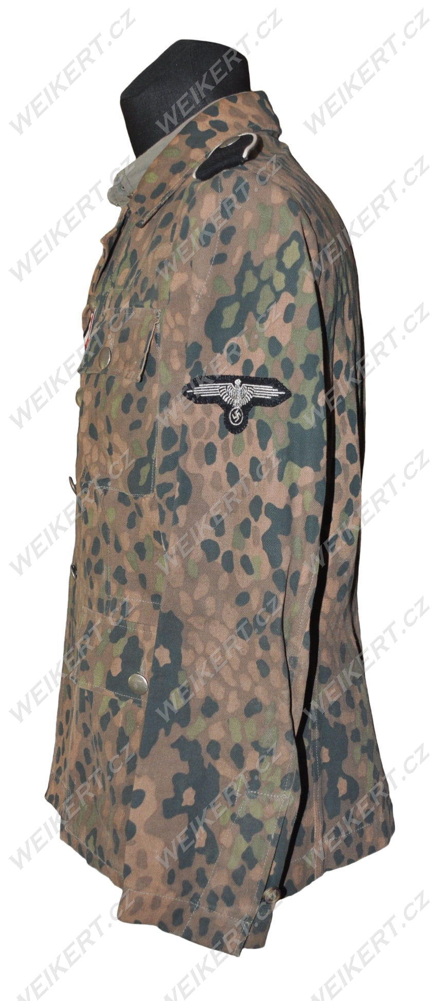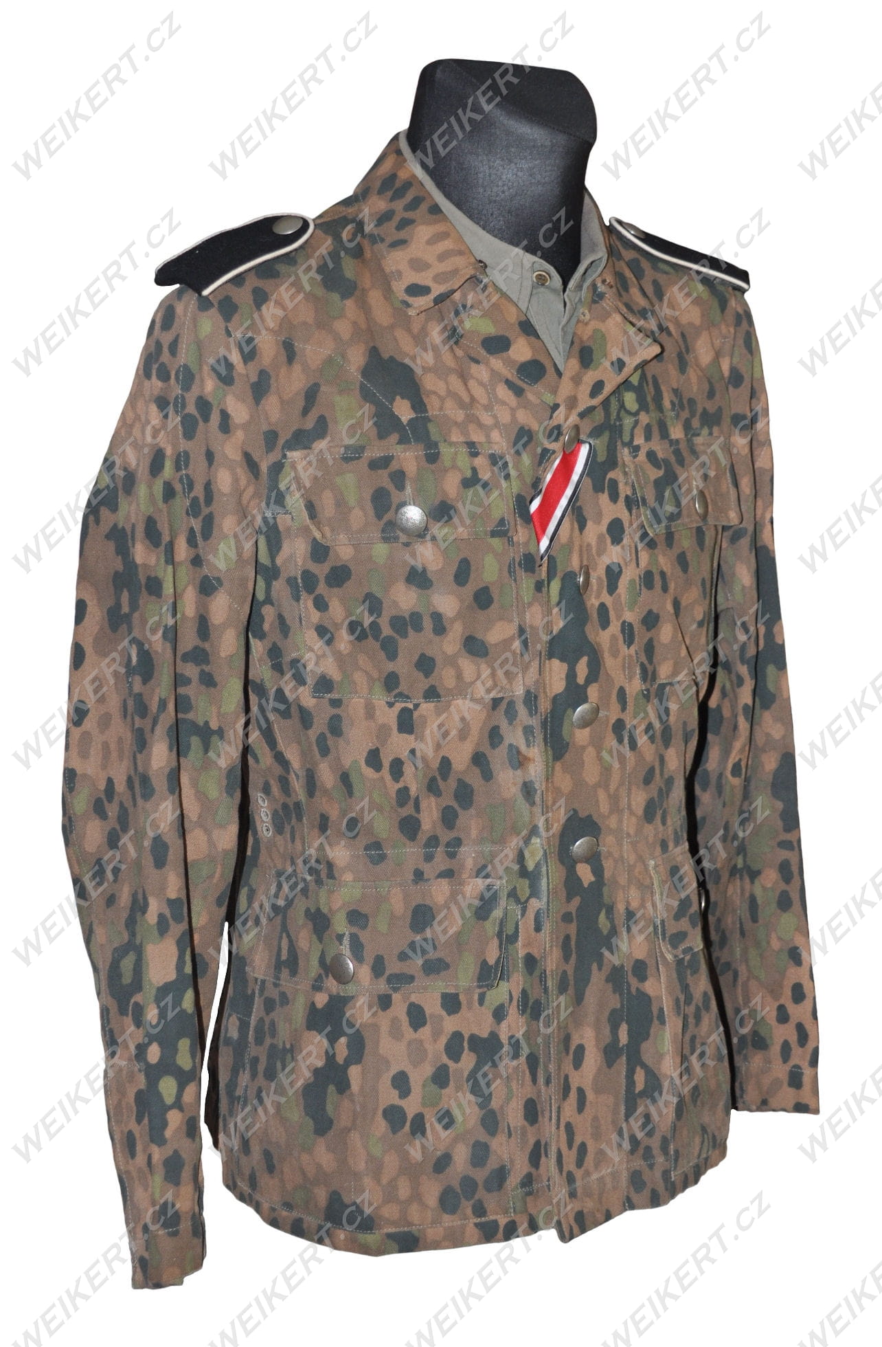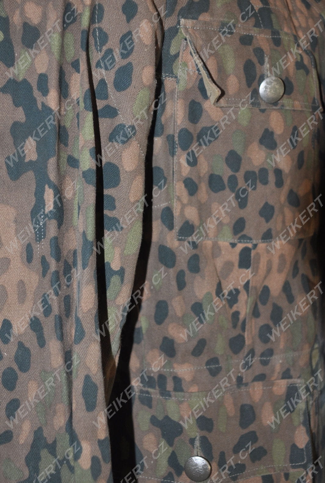 Eine perfekte Kopie einer deutschen Uniformjacke im Dot44-Tarnmuster, die im Zweiten Weltkrieg von Einheiten der Waffen-SS verwendet wurde.