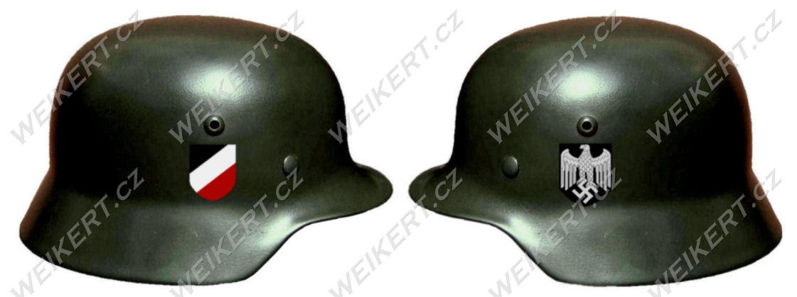 Jede Organisation, deren Mitglieder Helme trugen, hatte ihre eigenen, unverwechselbaren Abzeichen. Die Abzeichen verschiedener militärischer Verbände wurden mithilfe von Abziehbildern auf die Helme übertragen.