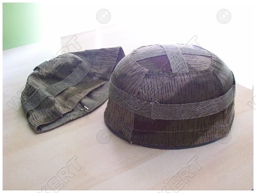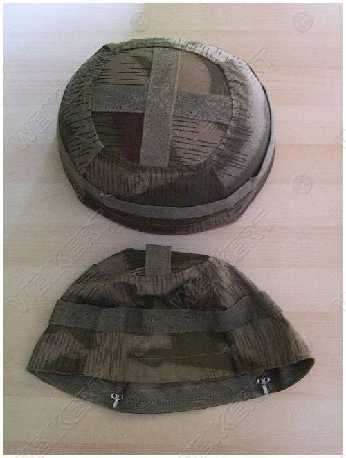 A perfect replica of a German seat cover masking the parachute helmet M38 (Fallschirmschützen - Stahlhelmtarnüberzeug) - used by troops of the German Fallschirmjäger paratroopers during World War II.