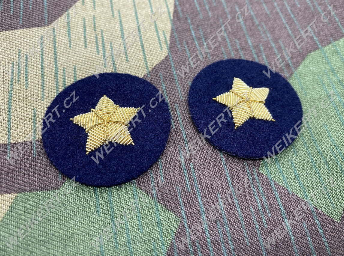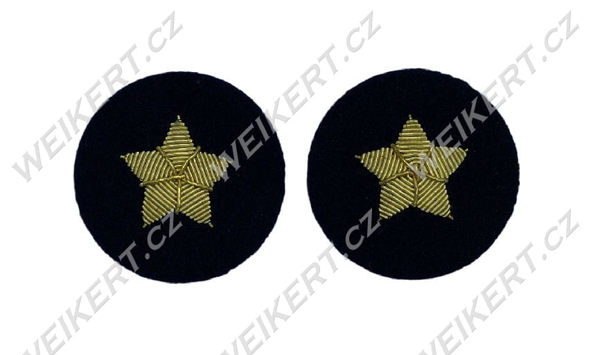 This is a set of two gold-embroidered stars ready to be sewn on above the braids on the sleeves of the uniform.