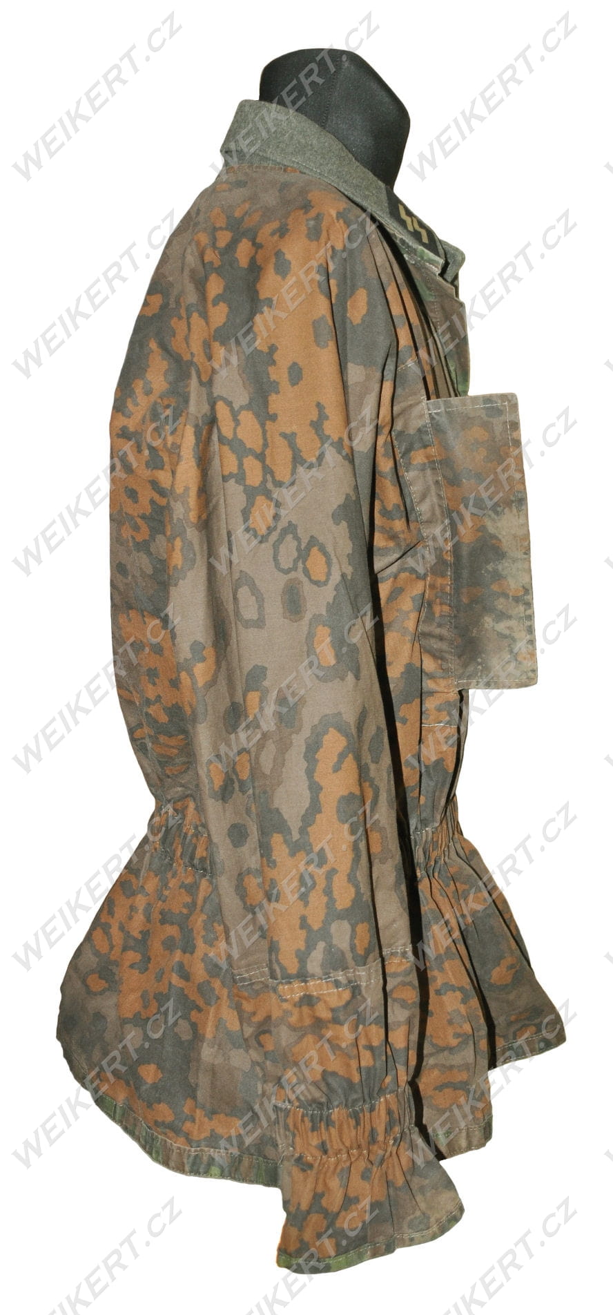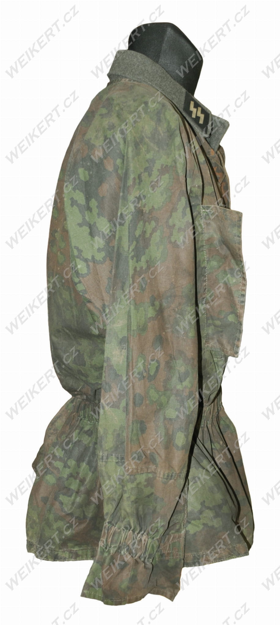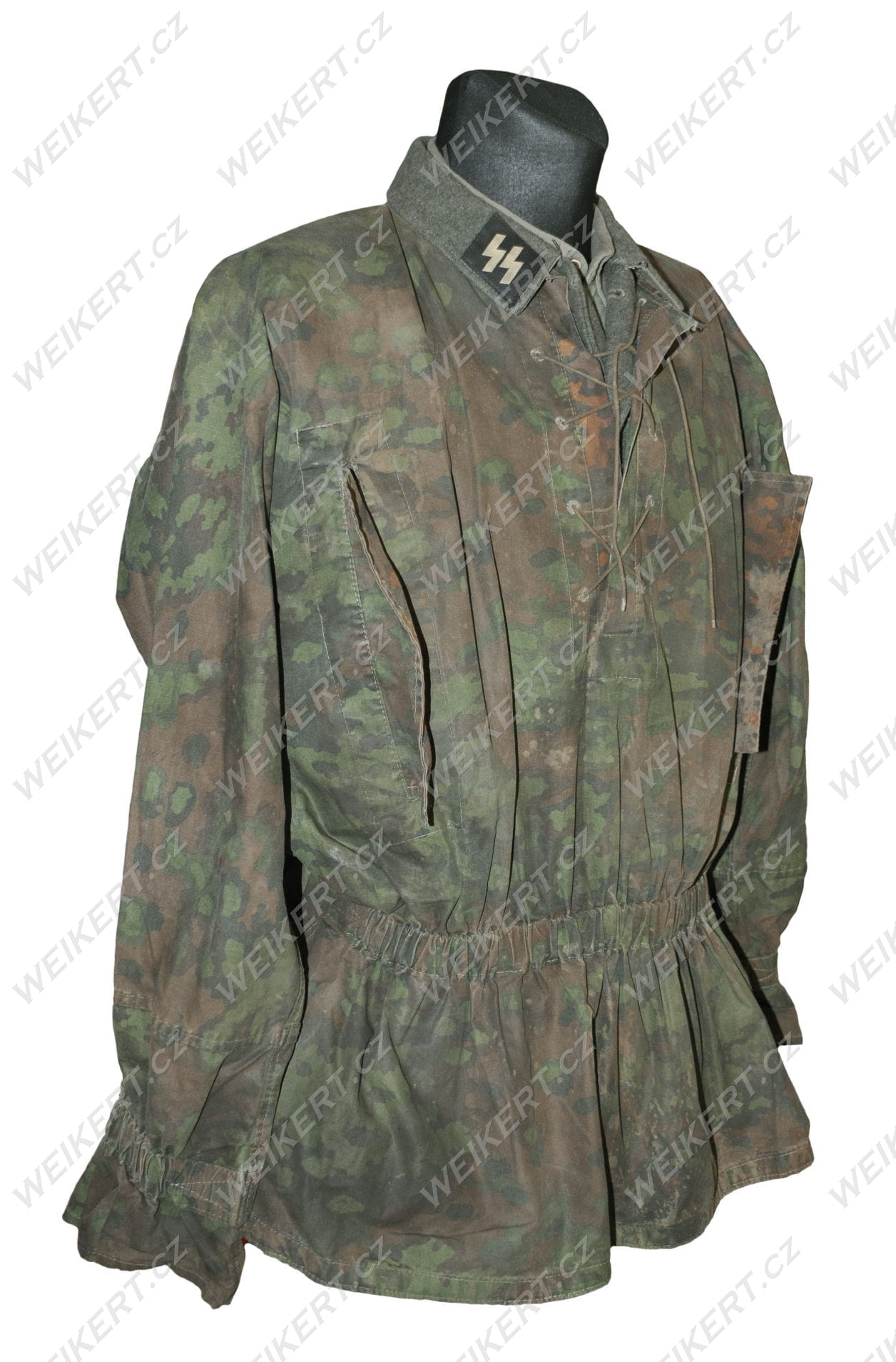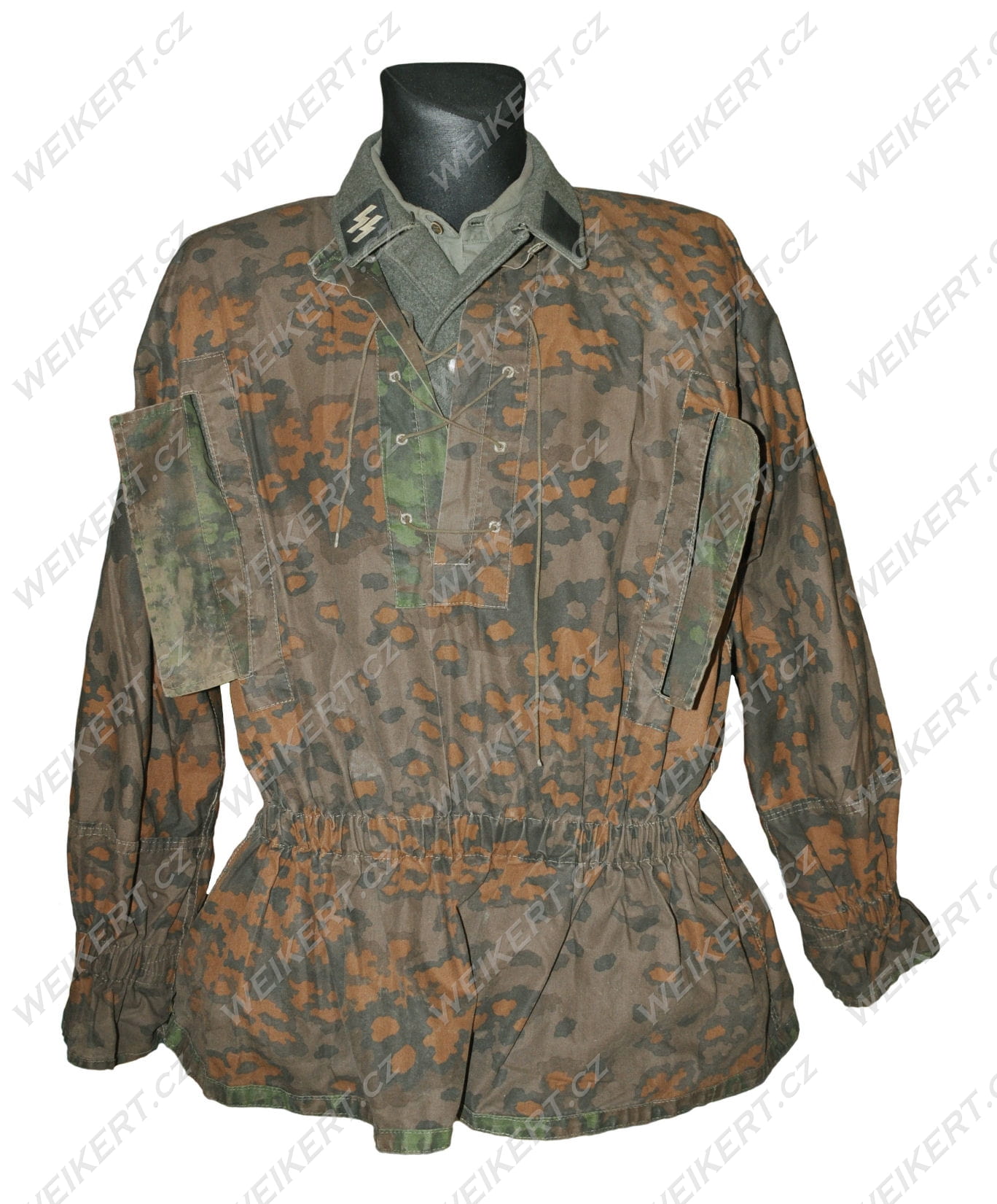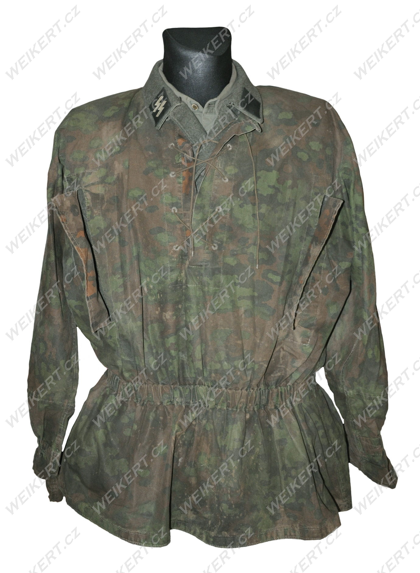 These camouflage blouses were worn directly over the regulation feldgrau uniform, with the collar with the rank and SS runes on top (this is shown in one of the photos).