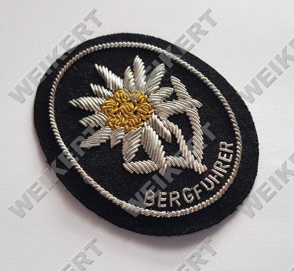 The excellent replica of Mountain troops / Gebirgsjäger edelweiss arm badge for the mountain guide " Bergführer ".