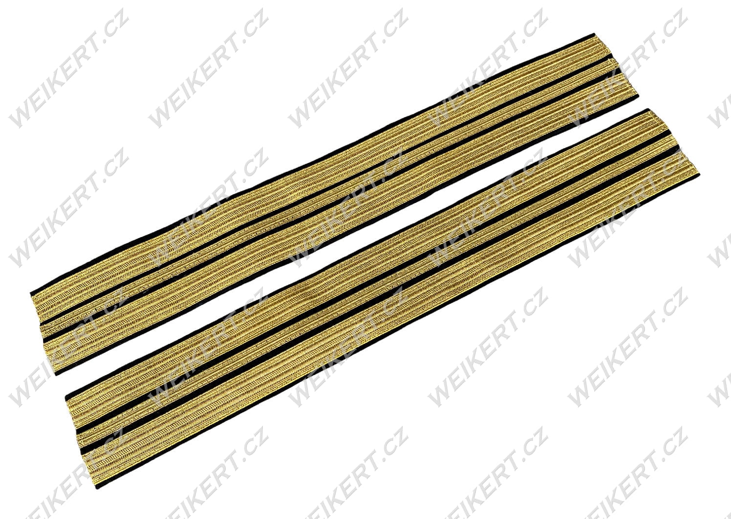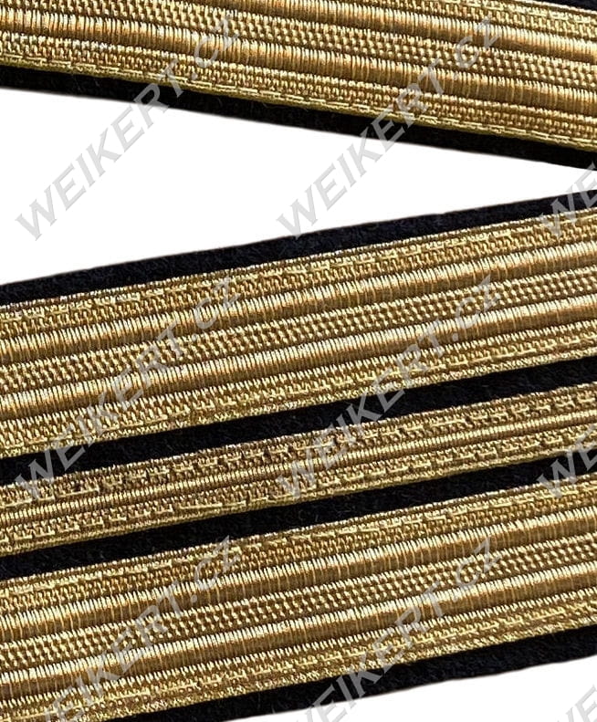 Jest to kompletna wersja złotych dystynkcji oficerskich gotowych do naszycia na rękawy munduru . Oferowany komplet zawiera 2 pasy z naszytymi dystynkcjami (złotymi galonami) widoczny na zdjęciu głównym.