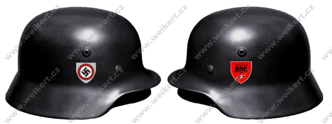 Każda organizacja, której członkowie nosili hełmy, stosowała odrębne, wyróżniające ją insygnia. Generalnie tak właśnie działo się w przypadku wszystkich wojskowych, politycznych i cywilnych organizacji. Insygnia różnych formacji wojskowych odwzorowywane były na hełmach za pomocą techniki kalkomanii.