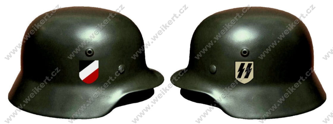 Każda organizacja, której członkowie nosili hełmy, stosowała odrębne, wyróżniające ją insygnia. Generalnie tak właśnie działo się w przypadku wszystkich wojskowych, politycznych i cywilnych organizacji. Insygnia różnych formacji wojskowych odwzorowywane były na hełmach za pomocą techniki kalkomanii.