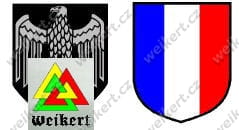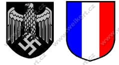 Kalkomania wodna przedstawiająca insygnia umieszczane po bokach hełmu używane przez jednostki Legionu Francuskiego.