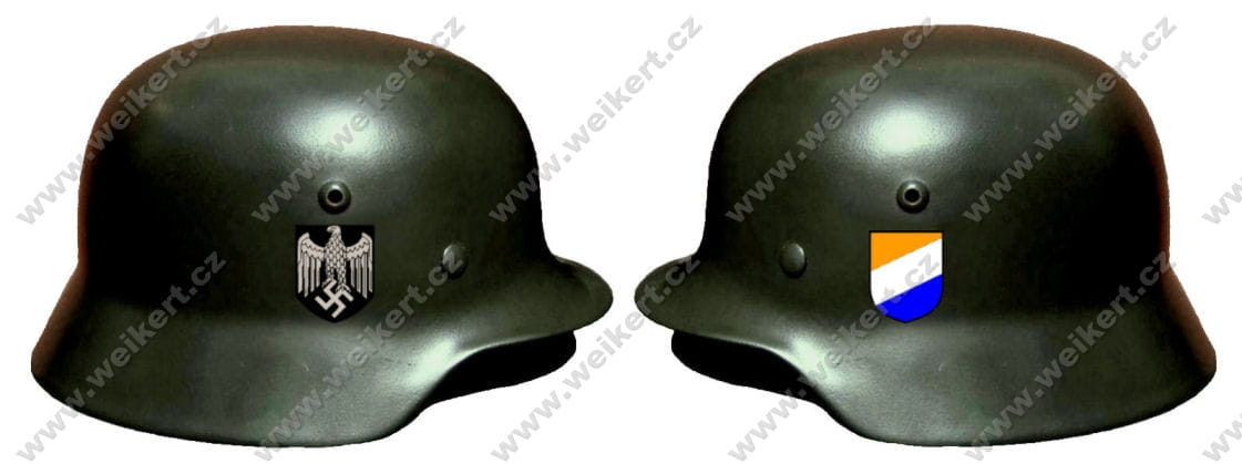 Każda organizacja, której członkowie nosili hełmy, stosowała odrębne, wyróżniające ją insygnia. Generalnie tak właśnie działo się w przypadku wszystkich wojskowych, politycznych i cywilnych organizacji. Insygnia różnych formacji wojskowych odwzorowywane były na hełmach za pomocą techniki kalkomanii.