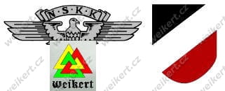 Kalkomania wodna przedstawiająca insygnia umieszczane po bokach hełmu używane przez jednostki NSKK.
