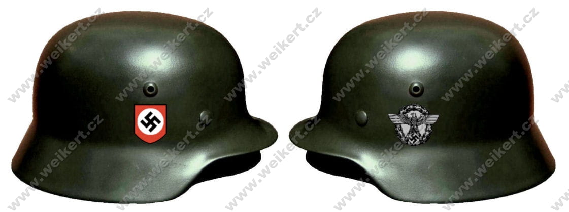 Każda organizacja, której członkowie nosili hełmy, stosowała odrębne, wyróżniające ją insygnia. Generalnie tak właśnie działo się w przypadku wszystkich wojskowych, politycznych i cywilnych organizacji. Insygnia różnych formacji wojskowych odwzorowywane były na hełmach za pomocą techniki kalkomanii.