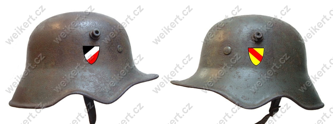 Kalkomania wodna przedstawiająca insygnia umieszczane po bokach hełmu używane przez jednostki Reichswehry - Baden.