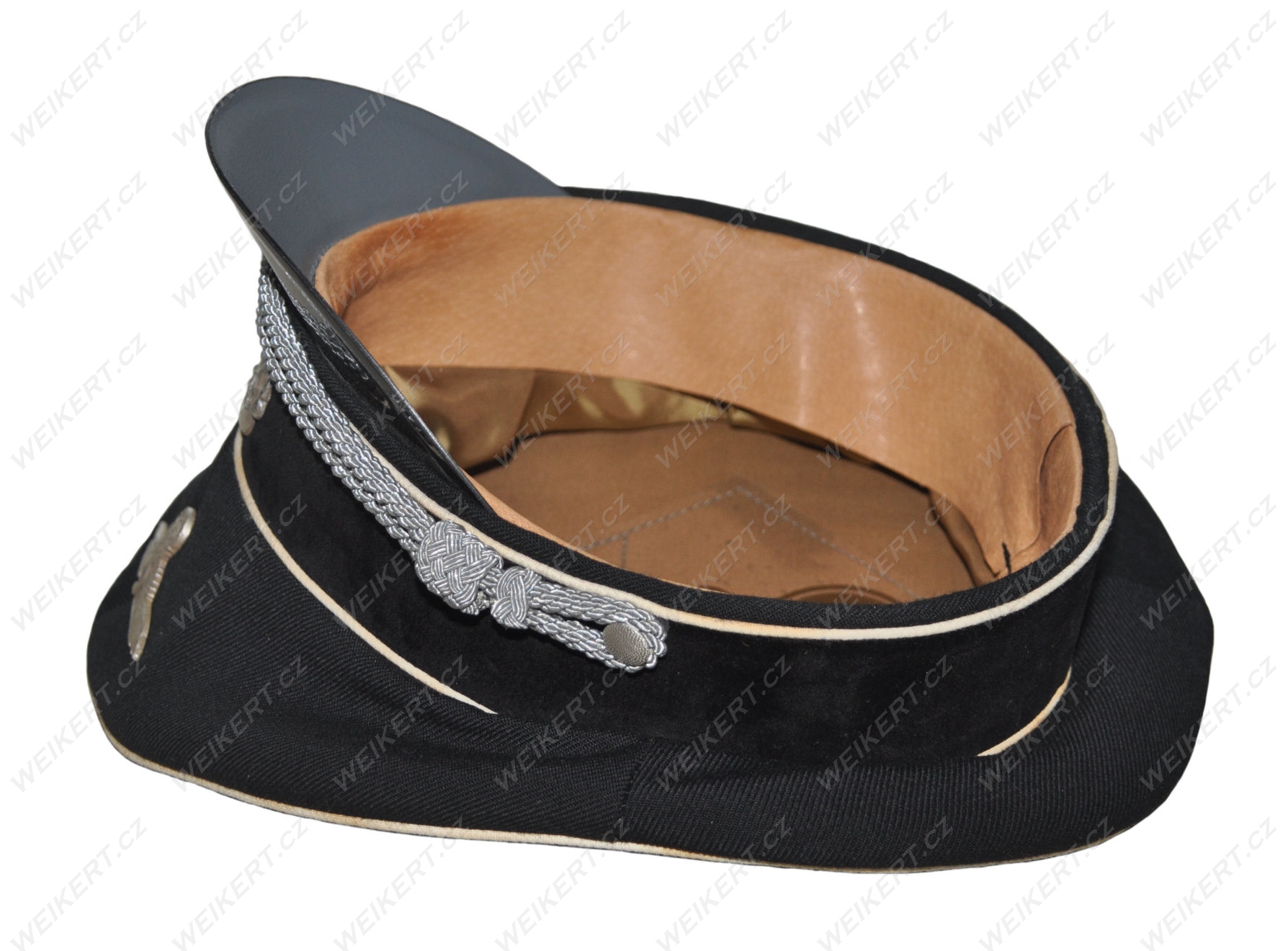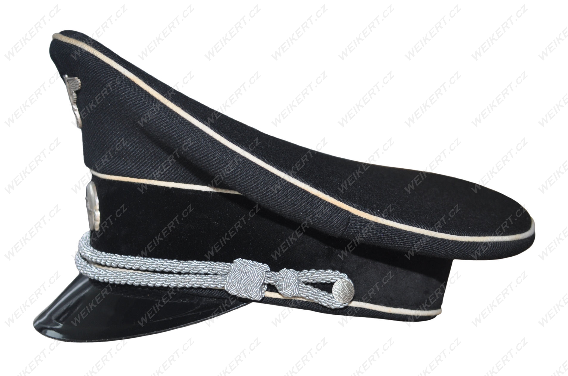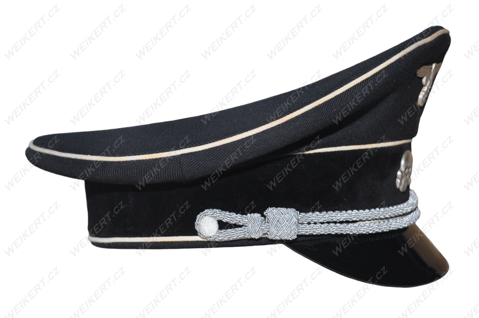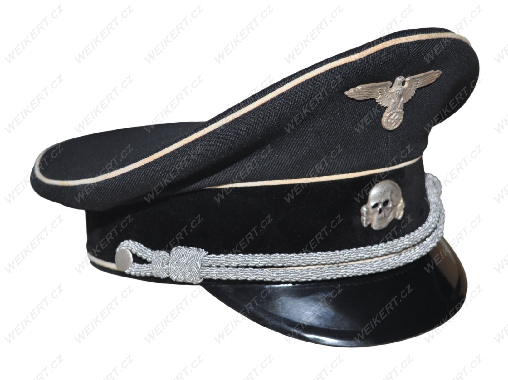 Doskonała replika niemieckiej postarzanej czapki oficerskiej ( czarna - Allgemeine SS ) - używanej w czasie II Wojny Światowej.