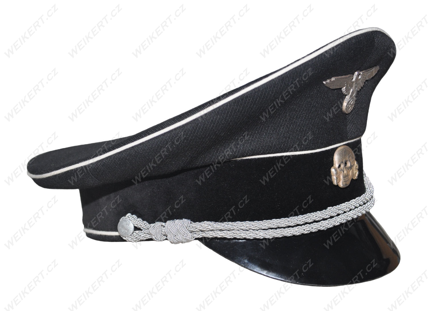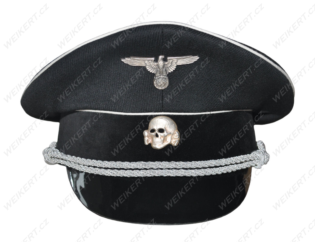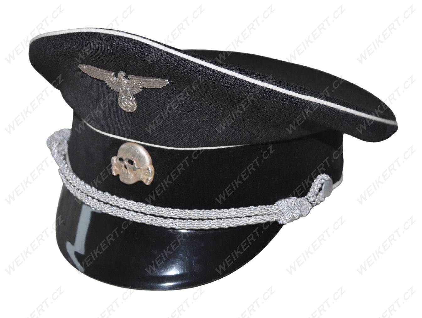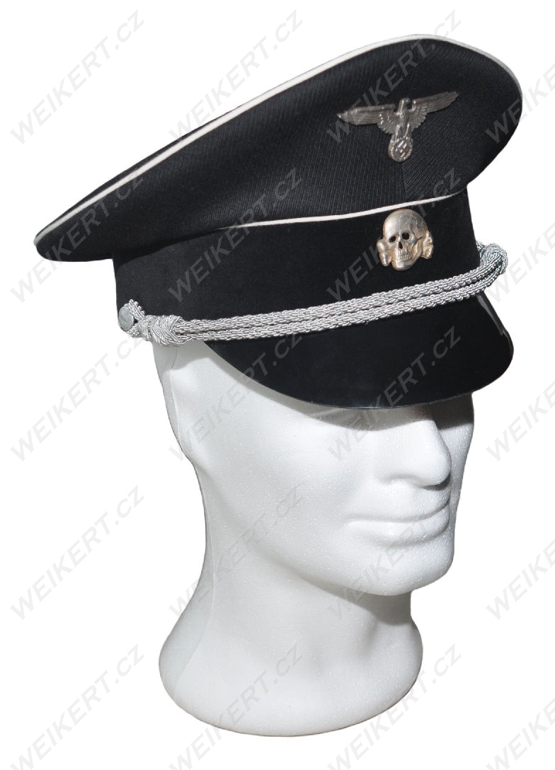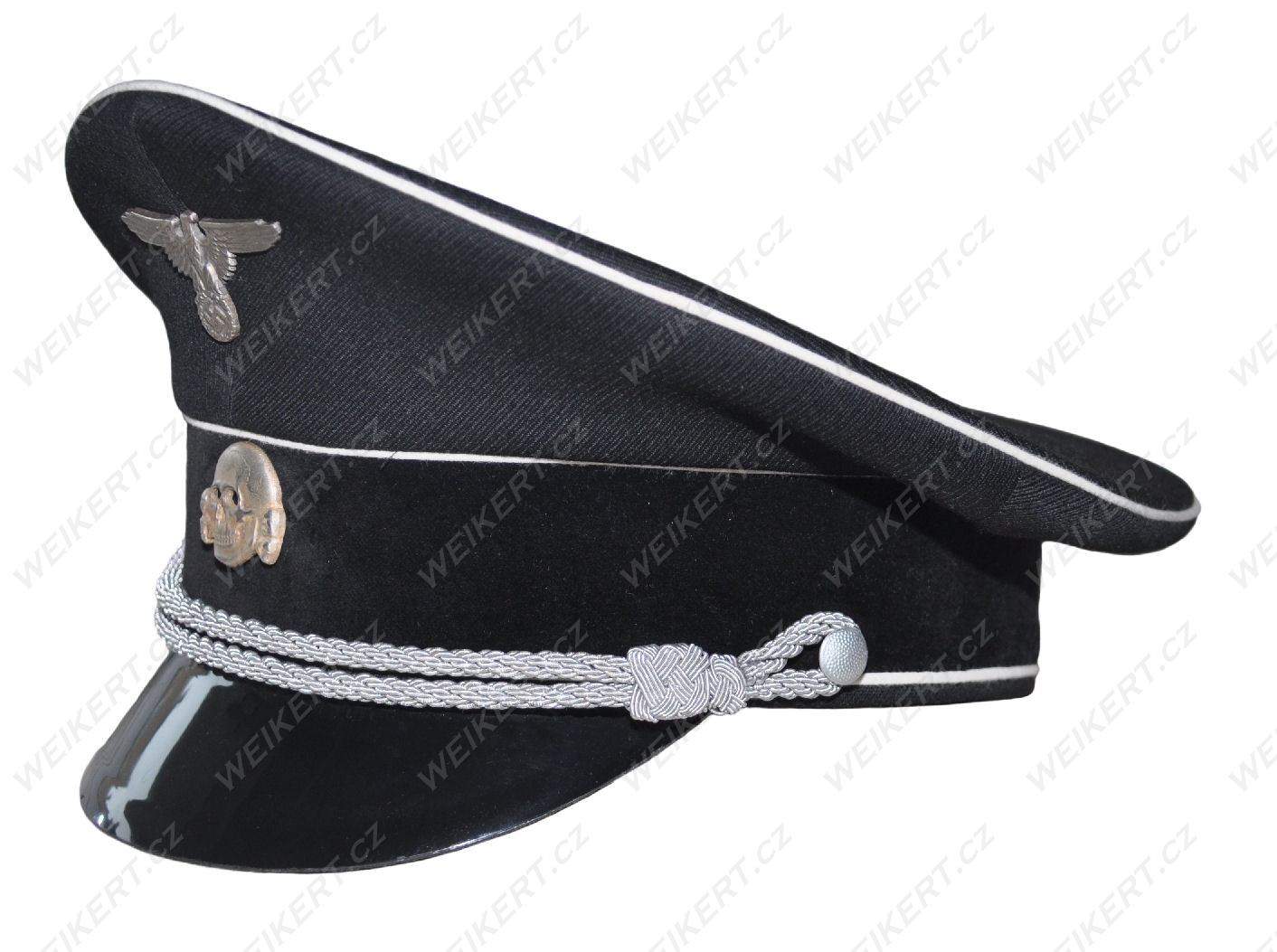 Doskonała replika niemieckiej czapki oficerskiej  ( czarna - Allgemeine SS ) - używanej w czasie II Wojny Światowej.