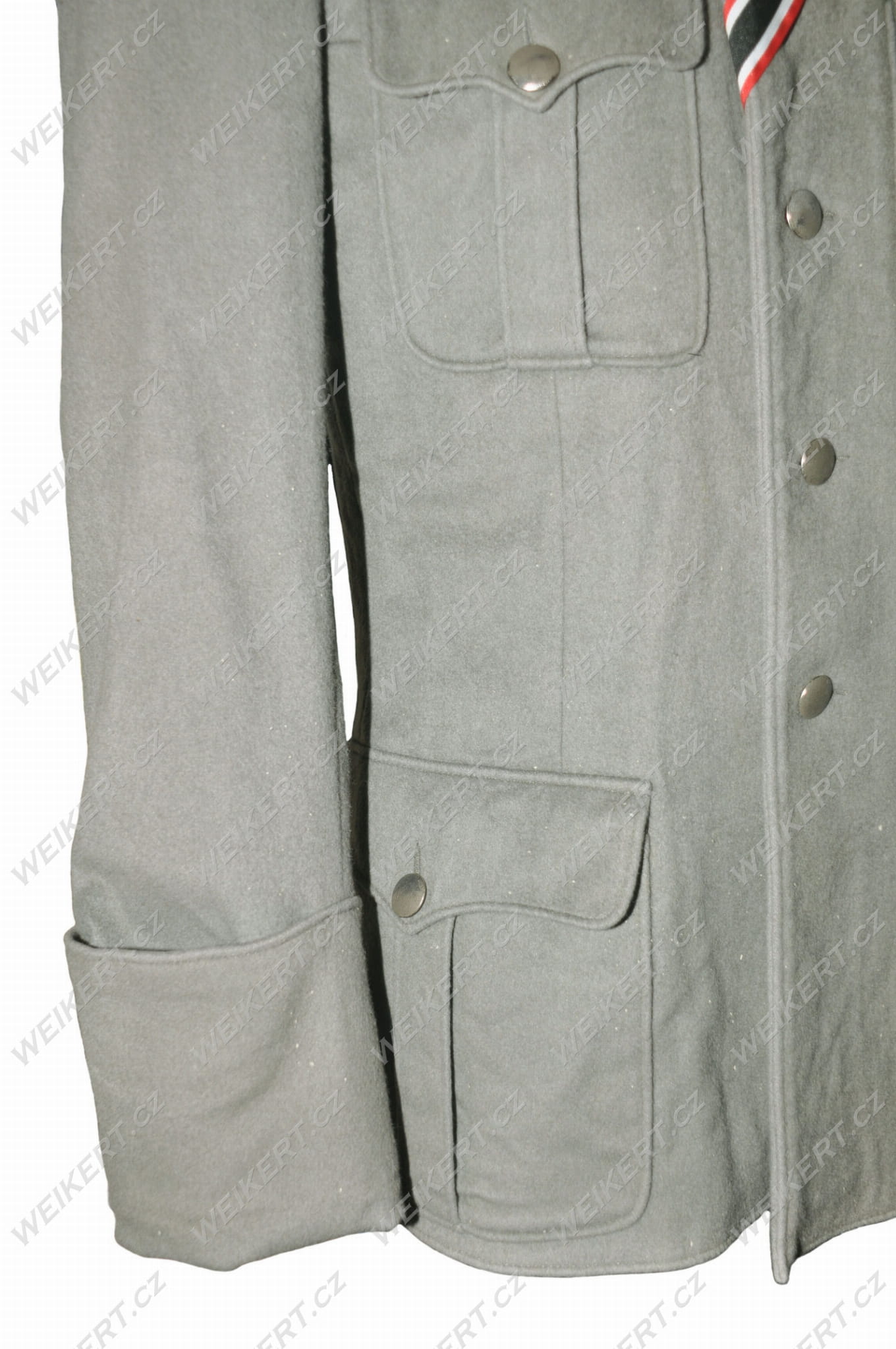 Mundur całkowicie obszyty ( Haftowany ręcznie bajorkiem orzeł , patki na kołnierzu oraz wstęga dywizyjna, wstęgi odznaczeń, żelazny krzyż, groszkowane guziki .