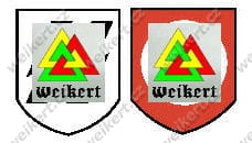 Kalkomania wodna przedstawiająca insygnia umieszczane po bokach hełmu używane przez jednostki WAFFEN SS. Jest to kalkomania z wczesnego okresu wojny. Runy SS są na białym tle.